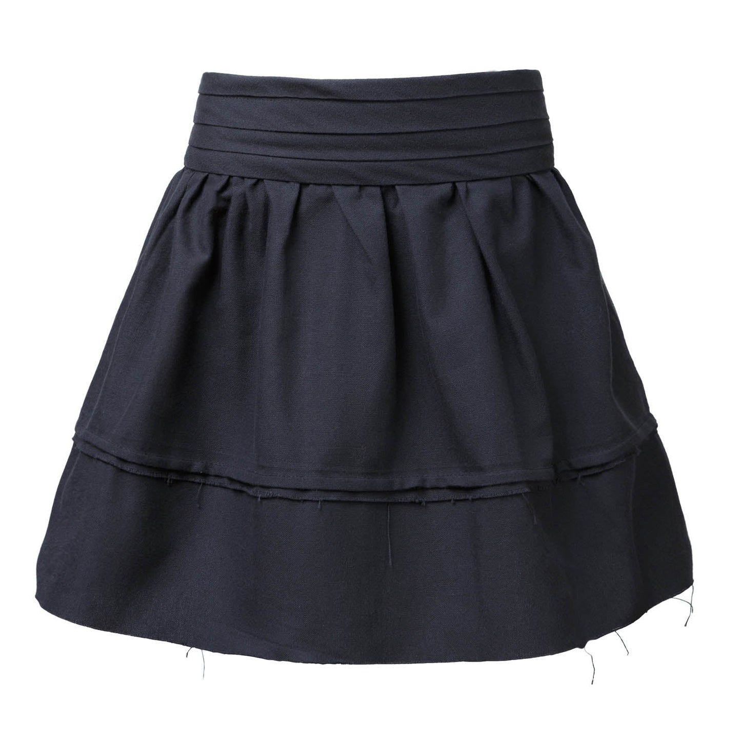 Black Mini Skirt with Pleated Belt is a tribute to Infantium VIctoria's core values - making black clothes green. Black A-line Skirt with raw hemline.